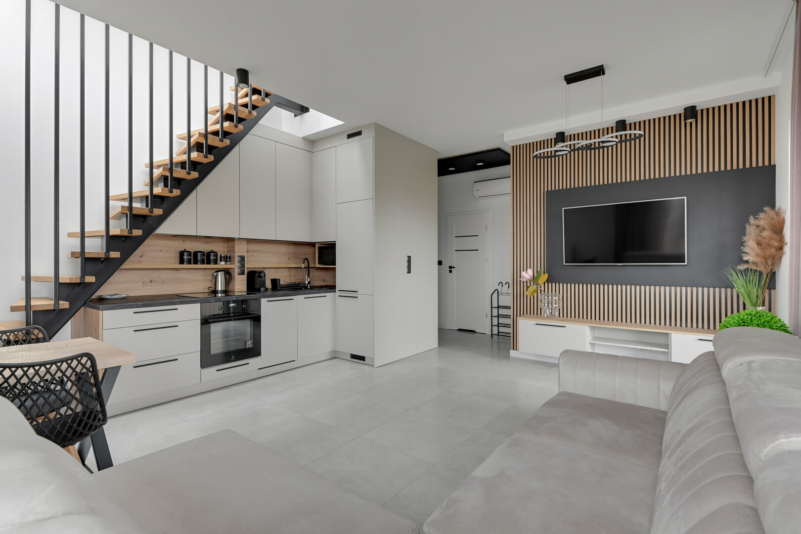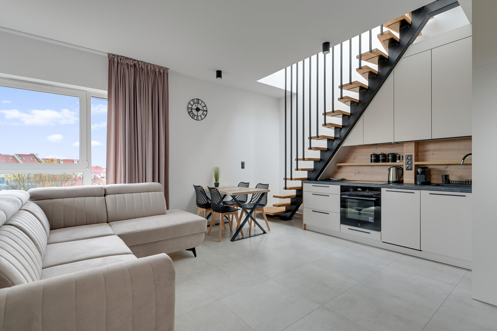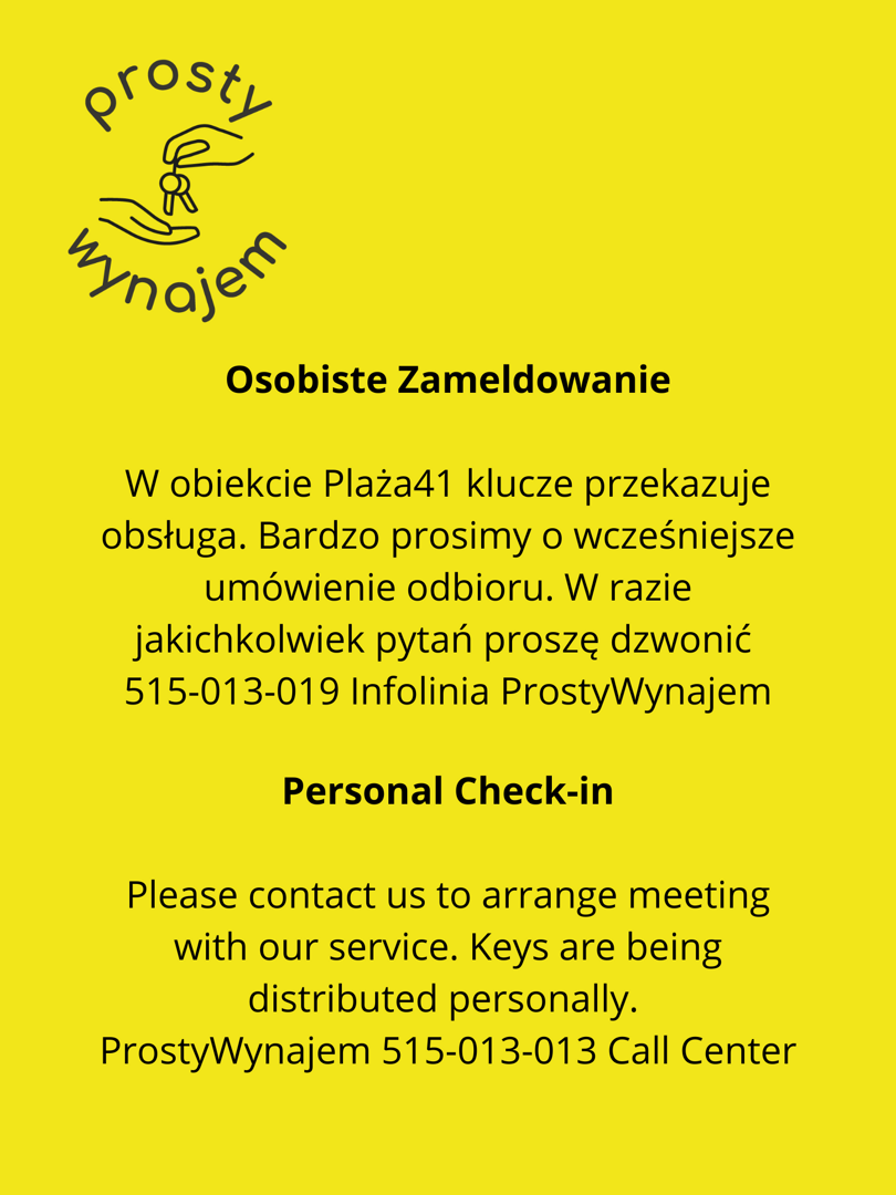 Odkryj wyjątkowe miejsce na mapie Gdańska, gdzie nowoczesny design spotyka się z szumem fal. Apartament Seaside Haven to ekskluzywna przestrzeń o powierzchni 40 m², zaprojektowana w stonowanych barwach beżu i różu.Większość apartamentów w budynku jest wyremontowana, jednak nadal mogą tu wystąpić hałasy związane z remontami sąsiednich apartamentów. Lokalizacja, która zachwyca Apartament znajduje się w prestiżowej inwestycji Almar Development Plaża 41 tuż przy wyjściu na plażę nr 41 w Brzeźnie, zaledwie 100 metrów od piaszczystej plaży. To idealna lokalizacja dla osób ceniących bliskość natury – tuż obok rozpościera się Park Brzeźnieński, a liczne ścieżki rowerowe i piesze zapraszają do aktywności. Wygoda na miejscu: W budynku znajdują się sklepy (Dino, Rossmann), co sprawia, że codzienne zakupy masz na wyciągnięcie ręki. Świetna komunikacja: Tuż obok pętla tramwajowa – szybki i bezpośredni dojazd na Stare Miasto oraz do pozostałych części Trójmiasta. Twój prywatny azyl na dachu Największym atutem apartamentu jest spektakularny, prywatny taras o powierzchni około 40 m². Prowadzą do niego stylowe schody bezpośrednio z salonu. To idealne miejsce na: poranną kawę przy wschodzie słońca, wieczorny relaks z lampką wina, odpocinek po dniu pełnym wrażeń na świeżym powietrzu. Wnętrze Premium Mieszkanie zostało urządzone z dbałością o każdy detal: Salon z aneksem kuchennym: Przestronny, z wygodnym rozkładanym narożnikiem. Sypialnia: Przytulna oaza z dużym łóżkiem (160x200), pojemną szafą. Łazienka: Nowoczesna, z komfortowym prysznicem typu walk-in. Balkon: Dostępny z salonu – idealny na szybki oddech morskim powietrzem. SeaSide Haven to więcej niż nocleg – zapraszamy do tej niezwykłej lokalizacji Plaża41 Zarezerwuj swój pobyt już dziś!  Tel: 669-722-313; 515-013-019  www.prostywynajem.pl